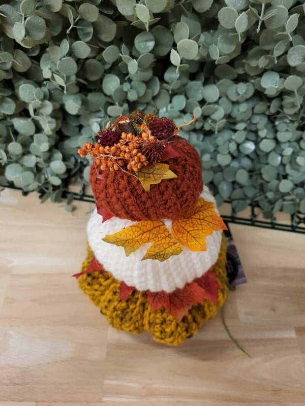 herfstknuffel gehaakte pompoentrio voor sfeervolle hoeken